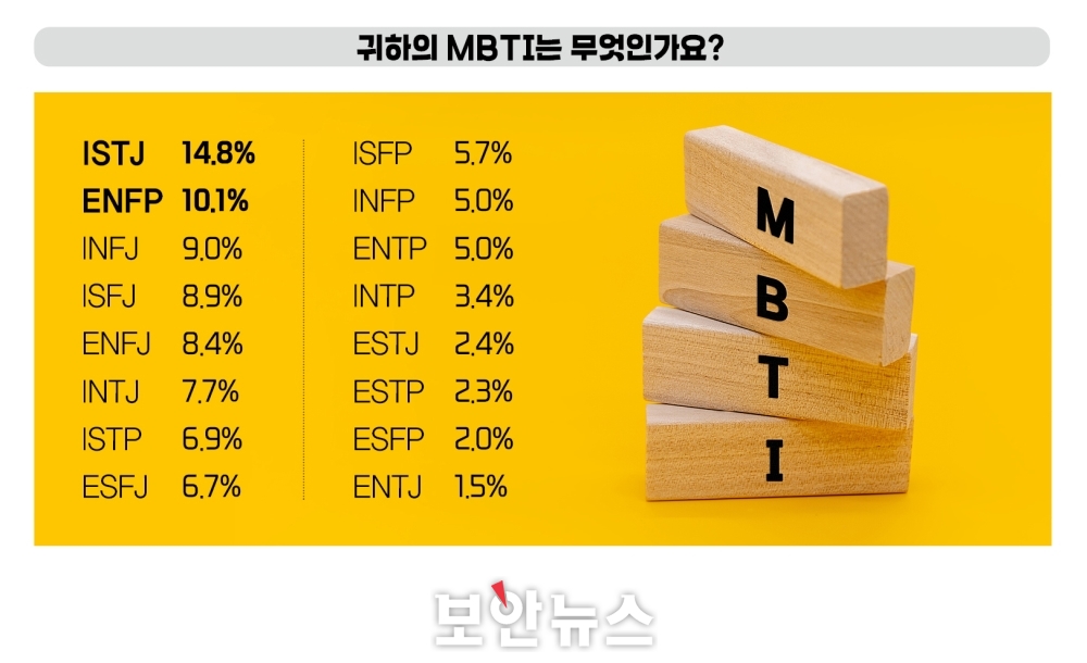 ISTJ가 14.8%로 1위...정반대 ENFP가 뒤이어