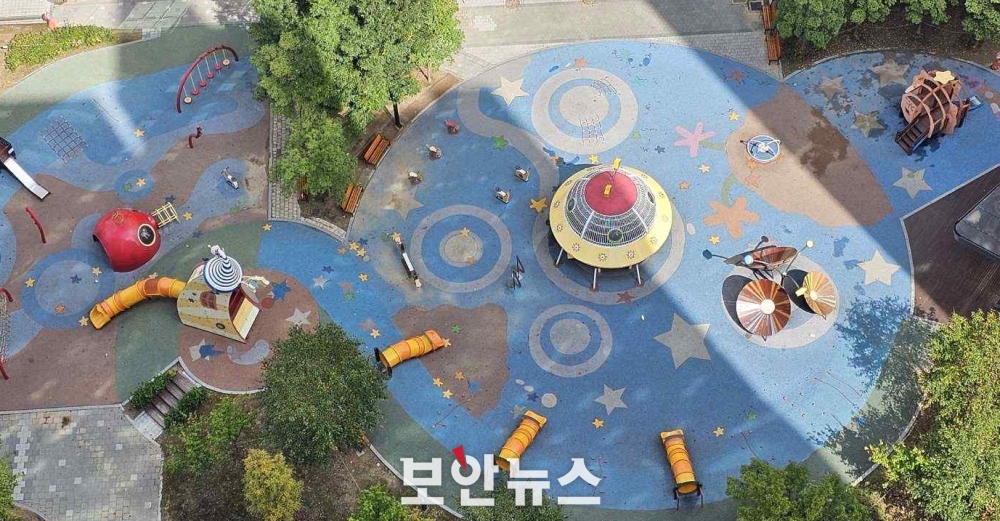 ‘천안스마일시티 효성해링턴플레이스 놀이터’(충남 천안시)는 아파트 단지 중앙에 위치해 접근성과 이용률이 높으며, 특히 아파트 옥상에 놀이시설 전체를 관찰할 수 있는 CCTV를 설치해 놀이터 이용 안전성을 더했다.