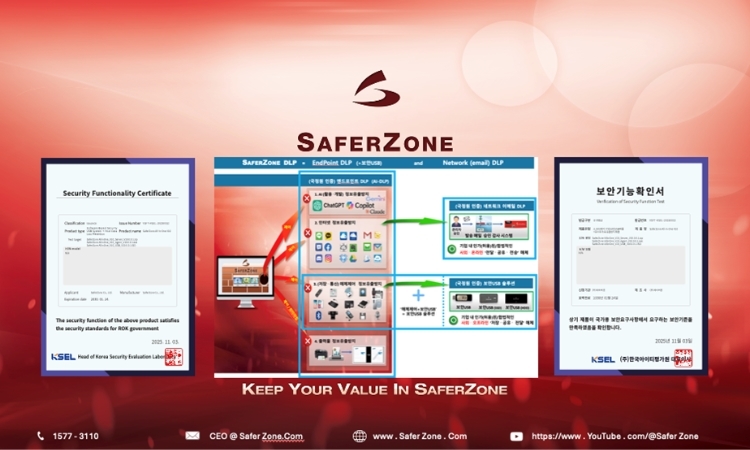 [보안뉴스 여이레 기자] 정보유출방지(DLP) 보안USB 전문기업 세이퍼존은 리눅스 로키OS 기반의 ‘세이퍼존 AI DLP’와 ‘세이퍼존 보안USB’ 제품이 국가정보원으로부터 2030년까지 유효한 보안기능확인서 인증을 획득했다고 10일 밝혔다.
