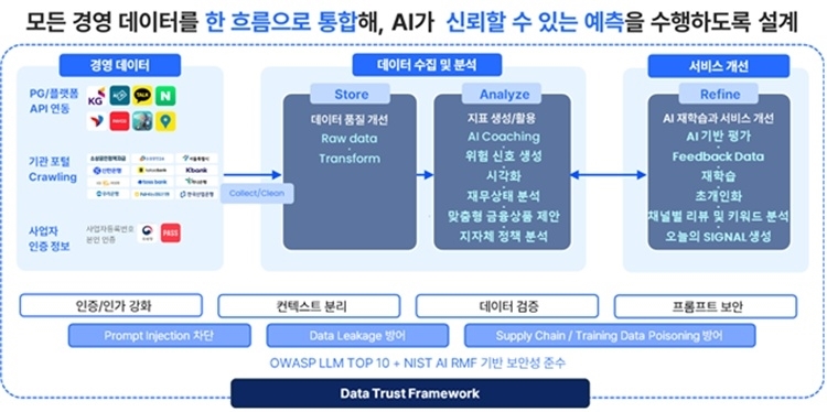 이 팀이 개발한 시그널(SIGNAL) 서비스는 소상공인의 매출, 순이익, 고객 리뷰 등 흩어진 데이터를 AI로 수집·분석해 필요한 조치 사항을 제안한다. 기존 사람이 일일이 조사하고 관리해야 했던 정보들을 일목요연하게 정리할 뿐 아니라, 소상공인의 위기관리에 필요한 조치를 AI가 제안하는 기능을 제공해 기술력과 기획력 양면에서 높은 평가를 받았다.