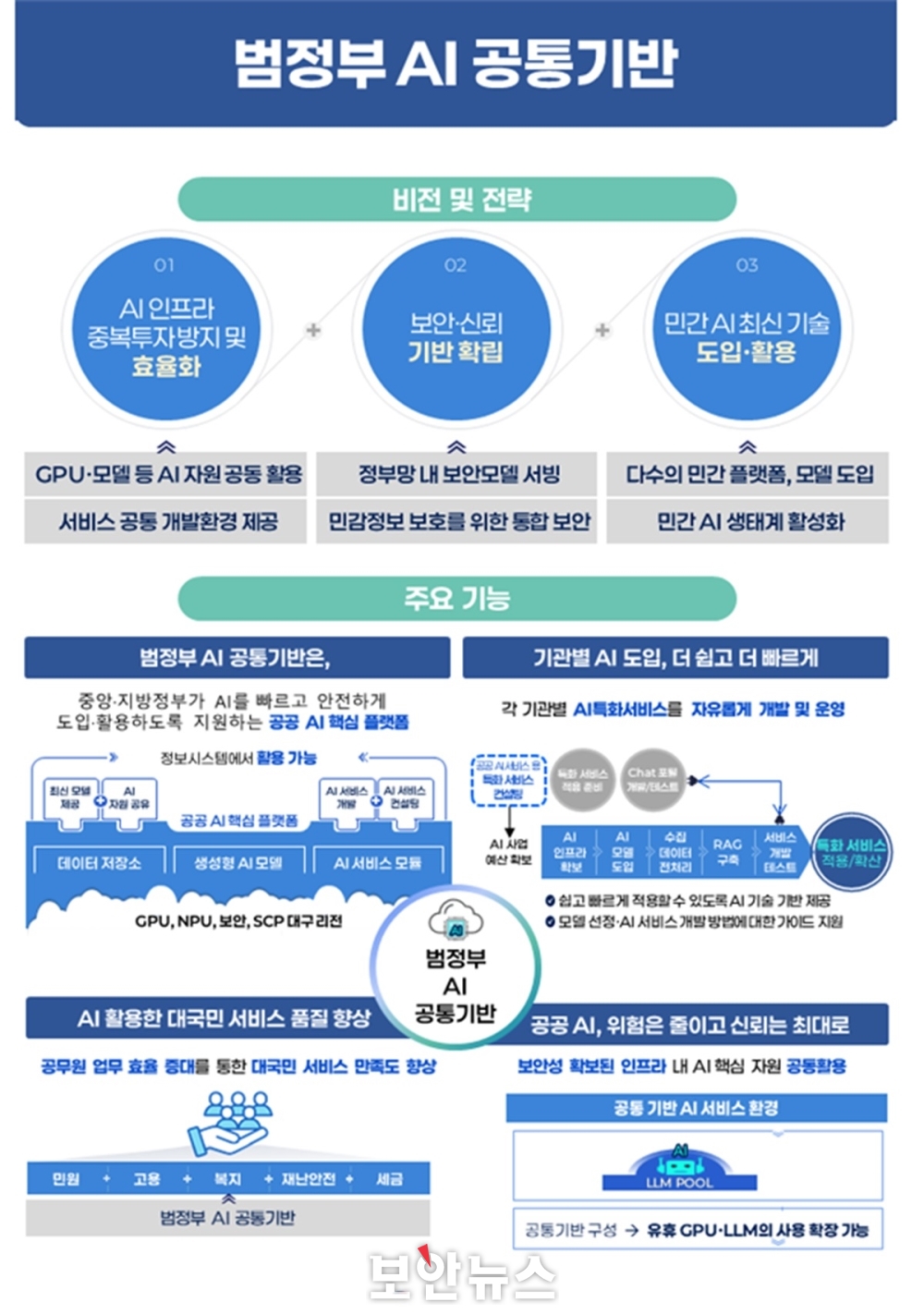 [보안뉴스 강초희 기자] 행정안전부(장관 윤호중)는 과학기술정보통신부(장관 배경훈)와 함께 중앙·지방정부가 내부망에서도 민간 AI 기술을 안전하게 활용할 수 있도록 ‘범정부 AI 공통기반’ 서비스를 개시한다고 밝혔다.
