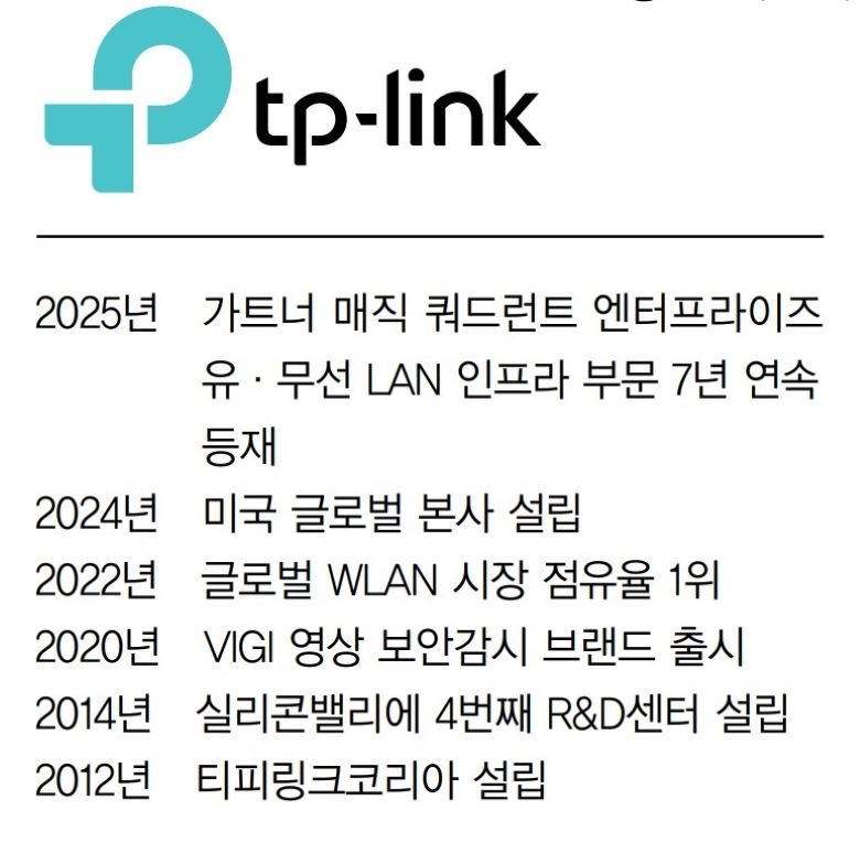 글로벌 파트너사의 협력 기반도 강화되면서 티피링크는 ‘생산 중심 기업’을 넘어 엔터프라이즈급의 신뢰성과 사용자 중심의 제품을 제공하는 ‘기술 중심 기업’이라는 정체성을 구축하게 됐습니다.