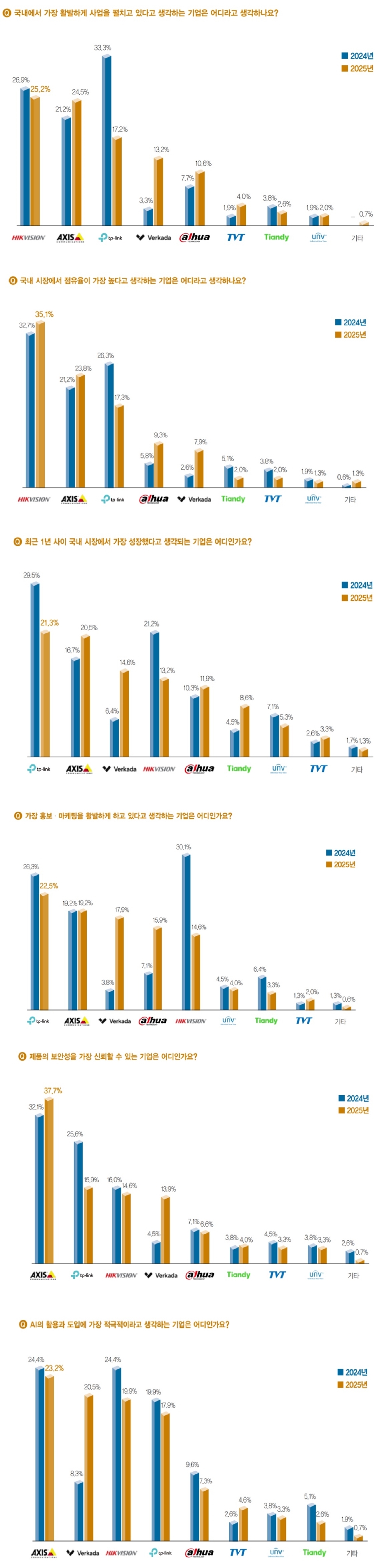 ‘Hikvision’, ‘Axis’, ‘TP-Link’ 상위권 각축, ‘Verkada’, ‘Dahua’ 선택 비중 높아져