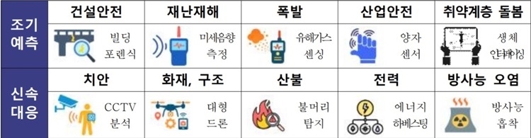 ▲국민안전 위협하는 현안에 조기예측 및 신속대응 위해 공통적으로 활용 가능한 10대 기반기술(안) [자료: 과기정통부]