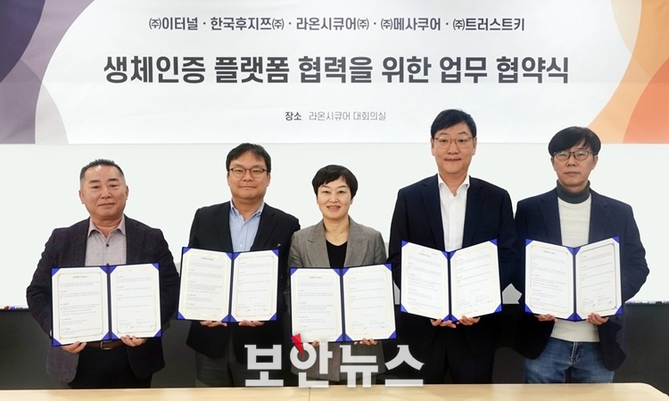 라온시큐어는 한국후지쯔, 메사쿠어컴퍼니, 이터널, 트러스트키 등 4개 기업과 각각 ‘생체인증 플랫폼 협력을 위한 전략적 제휴(MOU)’를 체결했다고 16일 밝혔다.