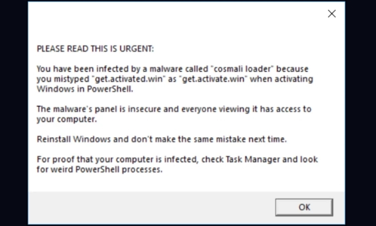 사용자들이 파워쉘 창에 명령어를 입력할 때 발생하는 사소한 오타를 노려 ‘코스말리 로더’(Cosmali Loader)라는 악성 스크립트를 배포한 것이다.