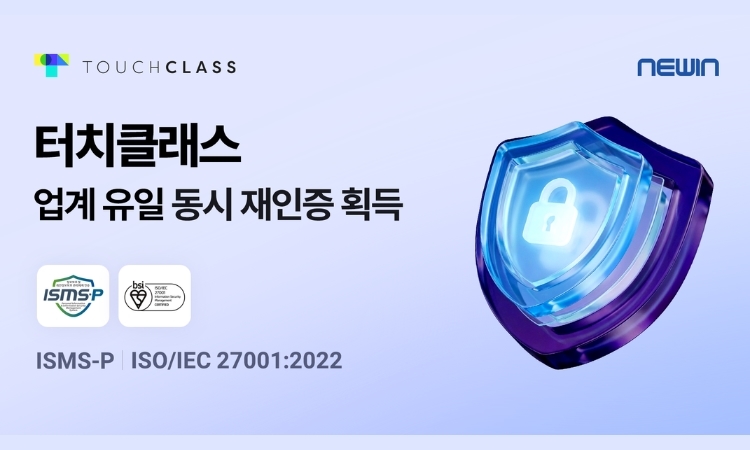 기능과 가격 중심으로 이뤄지던 솔루션 선정 기준이 ‘보안 인증 유무’로 급격히 이동하는 가운데, 기업 교육 솔루션 전문 기업 뉴인의 ‘터치클래스’(Touchclass)가 국내 최고 권위 정보보호 및 개인정보보호 관리체계(ISMS-P)를 2회 연속 재인증 받았다고 5일 밝혔다.