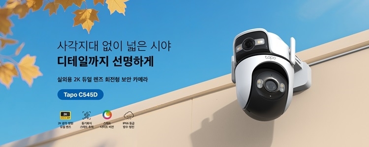 [보안뉴스 엄호식 기자] 티피링크 스마트홈 브랜드 타포(Tapo)는 광각과 망원이 결합된 2K 듀얼렌즈 실외 보안 카메라 ‘Tapo C545D’를 국내 출시했다고 밝혔다.