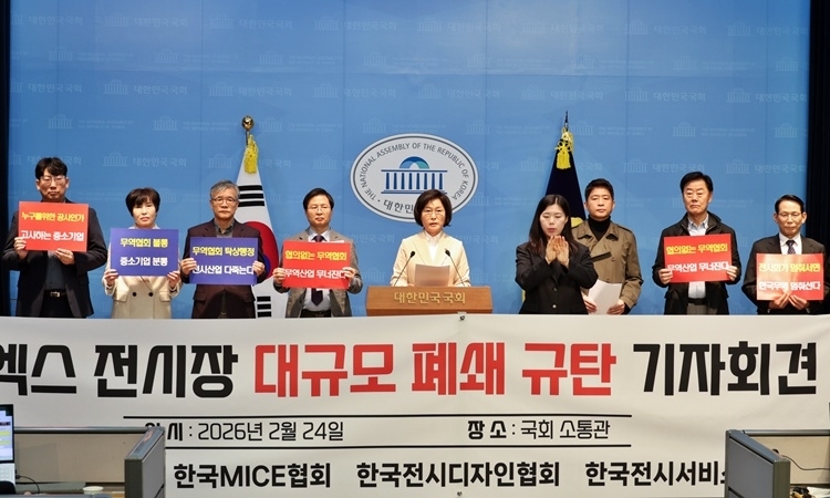 [보안뉴스 조재호 기자] 전시·컨벤션을 비롯한 마이스(MICE) 업계 주요 단체들이 한국무역협회(KITA)의 일방적인 코엑스 전시장 리모델링 및 장기 폐쇄 결정에 반발해 국회에서 규탄 기자회견을 열었다.