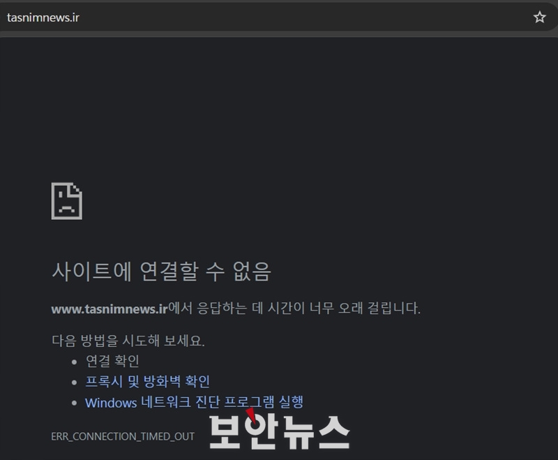 ▲연결되지 않는 타스님 통신 홈페이지[출처: 타스님 통신]