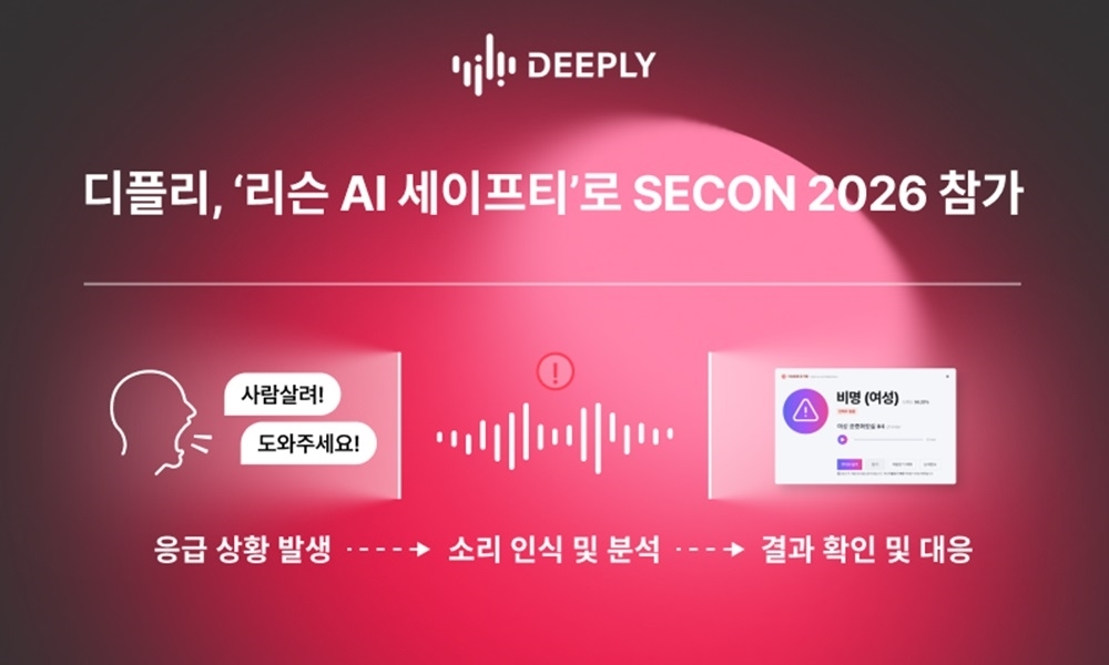 [보안뉴스 강초희 기자] 디플리(대표 이수지)는 아시아 최대 규모의 통합보안 전시회인 ‘세계 보안 엑스포 2026’(SECON 2026)에 참가한다고 12일 밝혔다. SECON 2026은 3월 18일부터 20일까지 킨텍스에서 개최된다.