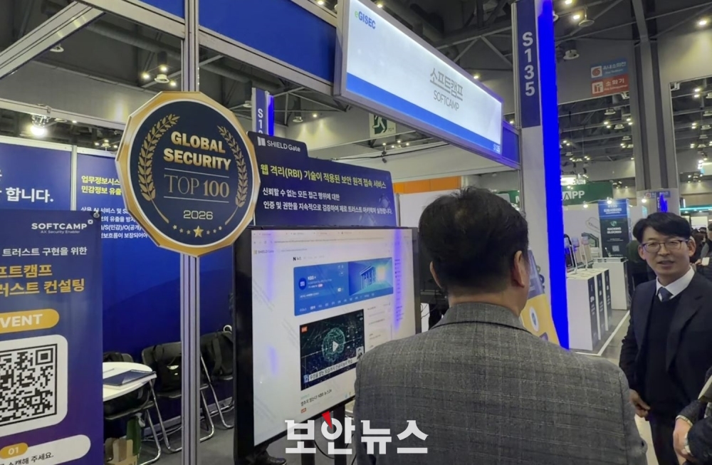 ▲배국환 소프트캠프 캠프가 부스에서 고객들과 만나고 있다. [출처: 보안뉴스]