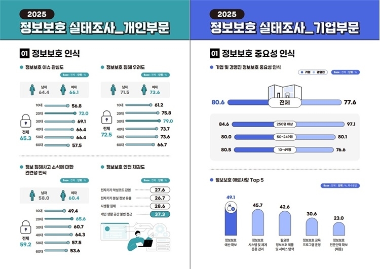 과학기술정보통신부는 한국정보보호산업협회(KISIA)와 함께 국민과 기업의 정보보호 체감 현황을 조사한 ‘2025년 정보보호 실태조사’ 결과를 27일 발표했다. 이번 조사는 5500개 기업과 3000명의 일반 인터넷 이용자를 대상으로 진행됐다.