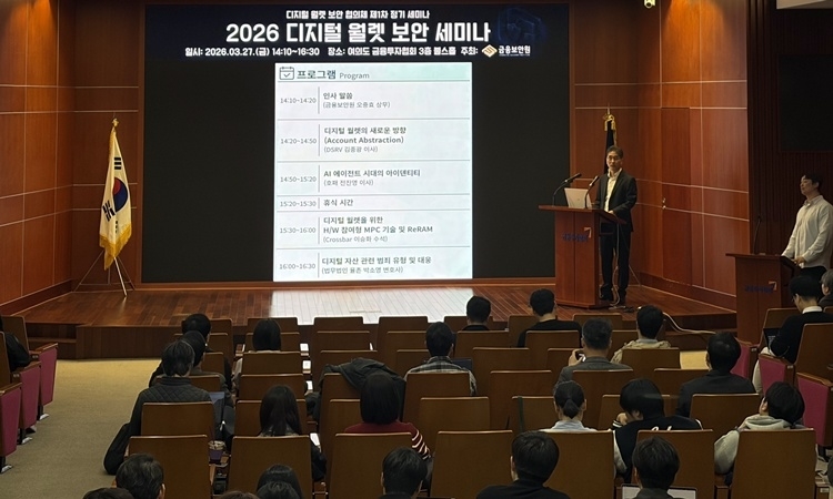 금융보안원은 지난 27일 여의도 금융투자협회 불스홀에서 금융회사 및 유관 기관 관계자들이 참석한 가운데 ‘2026 디지털 월렛 보안 세미나’를 성황리에 개최했다고 30일 밝혔다.