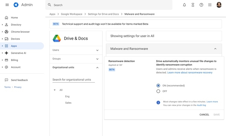 이번 업데이트는 다양한 종류의 랜섬웨어 암호화 방식을 훨씬 빠르게 식별해 내며, 감염 탐지율을 무려 14배나 끌어올린 방어망을 구축했다. 공격이 발생하면 사용자에게 알림이 전송되며, 구글 관리 콘솔의 보안 센터와 연동돼 초동 대응을 지원한다. 해당 기능은 구글 드라이브 v.114 이상에서 활용할 수 있다.