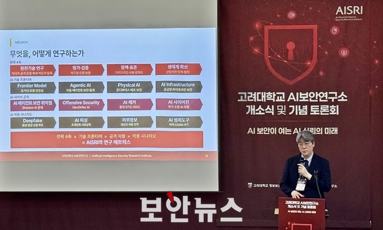 고려대학교 정보보호대학원이 3일 ‘AI보안연구소’(AISRI) 개소식 및 기념 토론회를 개최하고 AI 시대의 핵심 과제인 ‘신뢰(Trust)’를 확보하기 위한 본격적인 행보에 나섰다. 이상근 초대 AI보안연구소장은 신뢰할 수 있는 AI 구현과 회복탄력성(Cyber Resilience) 확보라는 두 축을 제시하며, 산·학·연·관을 아우른 기술 생태계의 허브 역할을 수행하겠다고 선언했다.