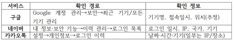 [보안뉴스 박미영 기자] 로그인 기록을 주기적으로 확인하면, 본인이 아닌 기기에서의 접속을 빠르게 발견해 비밀번호 변경, 로그아웃, 2단계 인증 등 조치를 취할 수 있어 계정 도용을 예방하는 데 도움이 된다. 구글·네이버·카카오톡 계정의 로그인 기록 확인 방법과 의심 기록 발견 시 대응이 핵심이다.