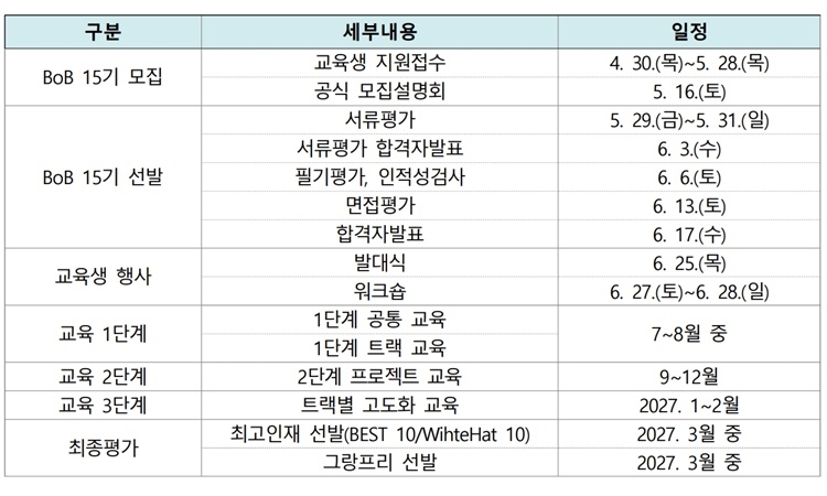 ▲ BoB 15기 주요 일정 [출처: KISA]