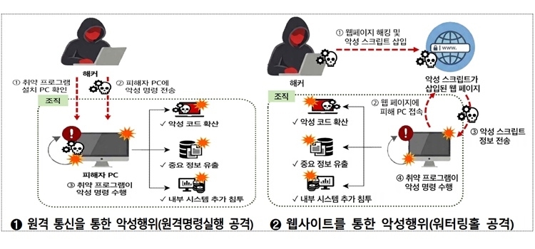 이번 취약점은 해커가 사용자 PC에 임의의 악성 명령을 실행할 수 있는 ‘원격 명령 실행’ 유형이다. 공격자는 취약한 프로그램이 설치된 PC를 원격으로 제어해 조직 내 다른 PC로 악성코드를 퍼뜨리거나 중요 정보를 유출할 수 있다. 또, 내부 시스템에 추가로 침투하기 위한 교두보로 악용될 가능성도 높다.