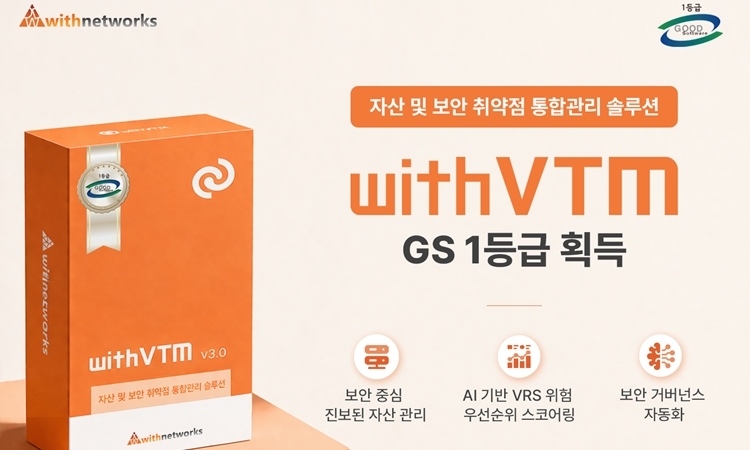 [보안뉴스 조재호 기자] 위드네트웍스는 자사의 자산 및 보안 취약점 통합 관리 솔루션 ‘withVTM V3.0’이 한국산업기술시험원(KTL)으로부터 소프트웨어 품질인증(GS) 1등급을 획득했다고 4월 8일 밝혔다.