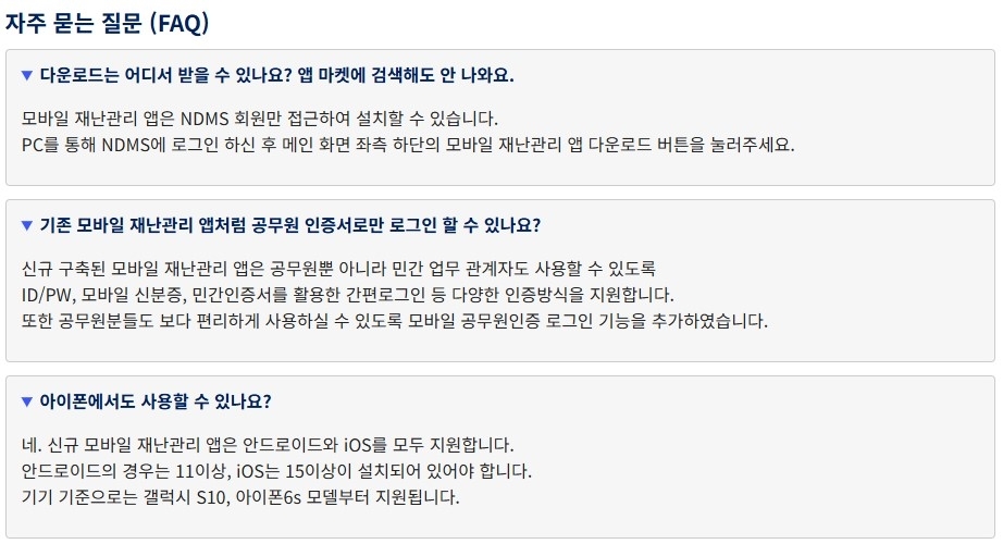 ▲‘모바일 재난관리 정보시스템’ FAQ [출처: 행정안전부]