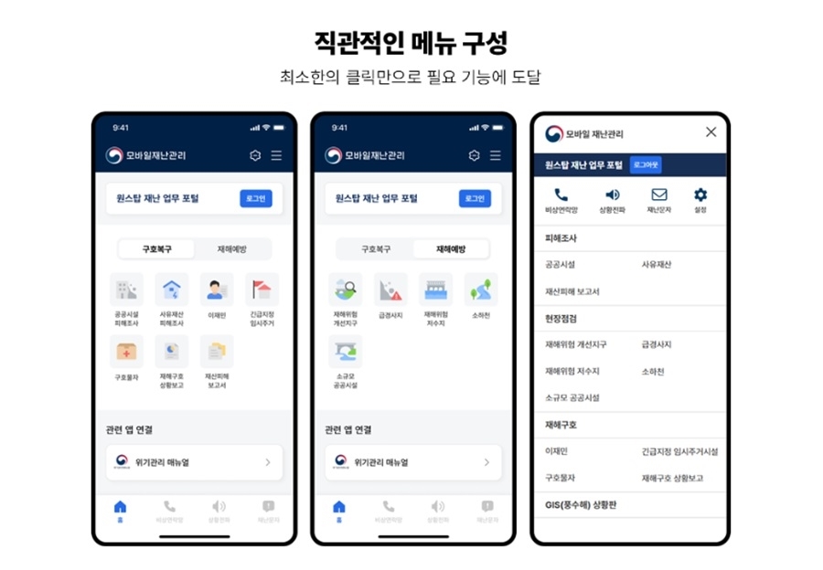 ▲‘모바일 재난관리 정보시스템’이 사용자 편의성 위주로 개편됐다 [출처: 행정안전부]