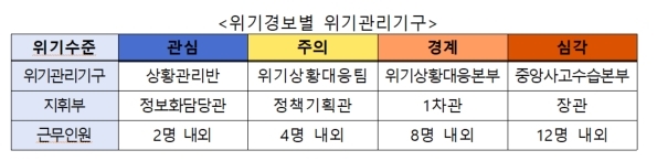 정보시스템의 위기징후가 감지되거나, 위기상황 변화에 따라 위기경보 수준 변경이 필요한 경우 자체적으로 상황판단회의를 개최해 위기 수준에 따라 위기관리기구를 구성 및 운영한다.