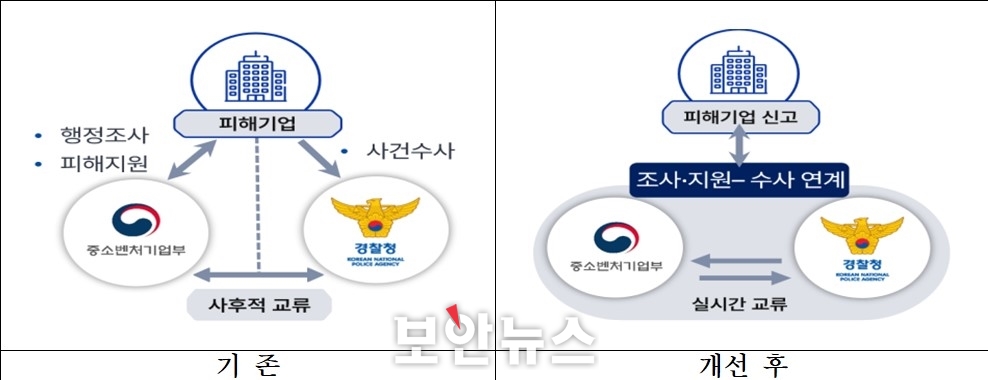 우선 기술탈취 ‘신속처리제(패스트트랙)’ 가동 관련해 중기부에 접수된 기술탈취 행정조사 신고 사건을 신고인이 요청하는 경우 경찰청의 산업기술유출 수사로도 신속히 연계할 방침이다.