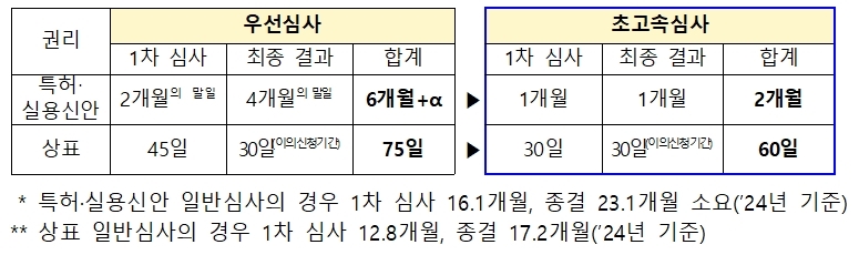 ▲우선심사와 초고속심사 비교 [자료: 지식재산처]