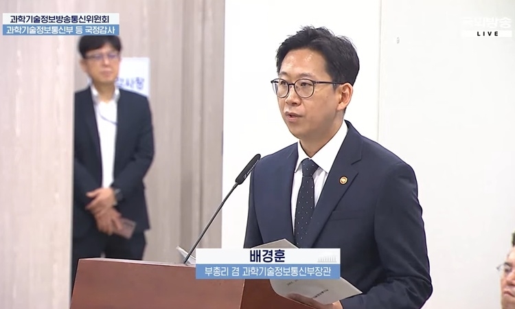 ▲과기정통부 국정감사 현장에서 배경훈 부총리 겸 과기정통부 장관이 발언하고 있다. [자료: 국회TV 유튜브 캡처]