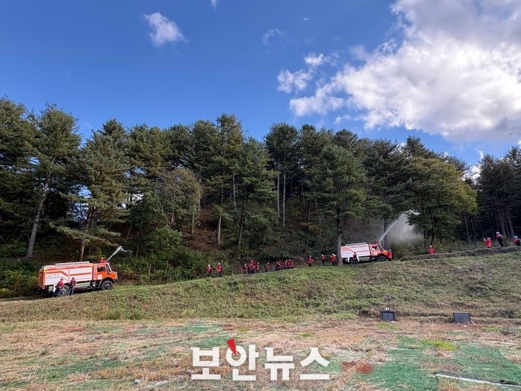 [보안뉴스 강초희 기자] 북부지방산림청(청장 이상익)은 10월 24일 강원특별자치도 홍천군 홍천읍 ‘산불진화훈련장’에서 산불 진화훈련을 실시했다.