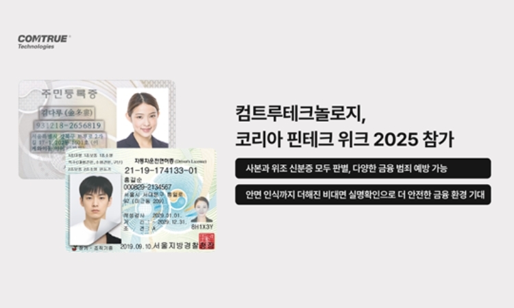 이러한 현실에 대응해 컴트루테크놀로지는 ‘코리아 핀테크 위크 2025’에서 비대면 본인확인 솔루션 ‘eKYC aiDee’를 선보인다. 정교해진 신분증 범죄에 대응해 안전한 금융거래 환경을 지원하는 솔루션이다.