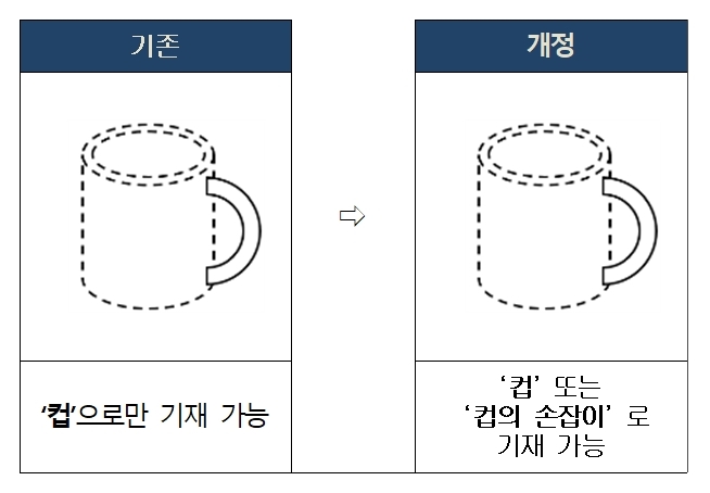 기존에는 컵의 손잡이만 보호받더라도 물품 명칭은 전체 ‘컵’으로만 기재해야 했다. 하지만, 개정안 시행으로 ‘컵’ 또는 ‘컵의 손잡이’ 중 선택해 쓸 수 있게 됐다.