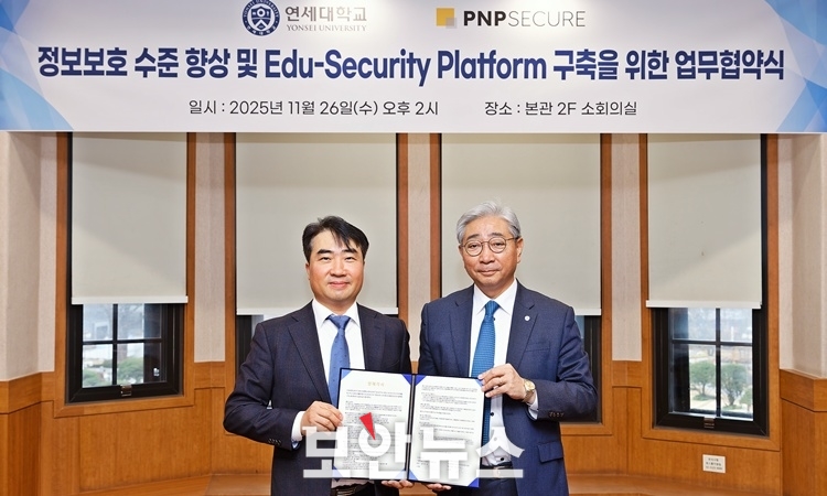 이번 MOU는 연세대의 정보보호 수준을 향상하고, 다중 캠퍼스 환경에 최적화된 보안 아키텍처를 확보하는 데 중점을 뒀다. 주요 협력 분야는 △정보보호 수준 향상을 위한 기술·정책적 협력 △피앤피시큐어 제품군을 기반으로 한 에듀 시큐리티 플랫폼 구축 및 운영 △정보보호 관리체계(ISMS) 인증 대응 및 감사 체계 고도화 △차세대 보안 기술(보안 로그 통합·지속 인증) 공통 검증 등이다.