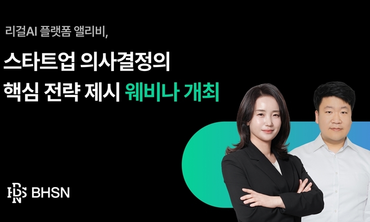 [보안뉴스 조재호 기자] 리걸AI 플랫폼 ‘앨리비’(allibee) 운영사 BHSN은 내달 11일 ‘스타트업 의사결정의 핵심 전략 제시’ 웨비나를 개최한다고 27일 밝혔다.