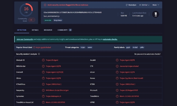 28일 로그프레소에 따르면, 샤이 훌루드는 프랭크 허버트의 소설 ‘듄’에 등장하는 사막 벌레에서 이름을 딴 악성코드로, 감염된 개발자 환경을 이용해 다른 소프트웨어 패키지에 스스로를 복제하는 공급망 기반 웜이다.