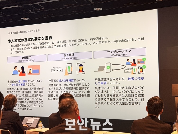 마사노리 사무총장은 마이넘버 카드가 1억장 가까이 발급돼 운전면허증 보유자 수를 넘어 일본 내 신원확인의 표준 수단으로 자리잡아 가고 있다고 강조했다. 하지만 그럼에도 모든 국민이 항상 카드를 휴대하는 것도 아니고 아직 발급 받지 않은 이들도 2000만명 이상 존재하기 때문에 대체 수단을 병용하는 전략이 필요하다고 전했다.