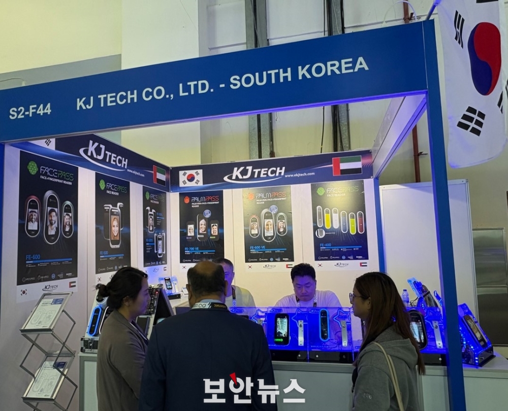 [아랍에미리트 두바이=보안뉴스 취재팀] 생체인식 전문기업 케이제이테크(대표 김명기)가 12일 개막한 중동 최대 보안 전시회 ‘인터섹 2026(Intersec 2026)’에서 독보적인 손바닥 혈관인식 시스템을 비롯해 다양한 생체인식 기반 출입통제 시스템을 선보였다.