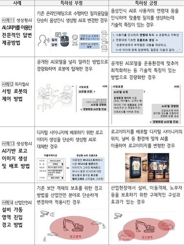 예컨대, 온디바이스 AI 기술이 탑재된 ‘서빙 로봇 제어’ 사례는 공개된 AI모델을 널리 알려진 방법으로 경량화해 로봇에 탑재한 경우 특허를 받을 수 없지만, 로봇이 움직이는 음식점 내 환경, 로봇의 가용자원 등을 반영해 공개된 AI모델을 최적화해 경량화한 경우 인정될 수 있음을 보여준다.