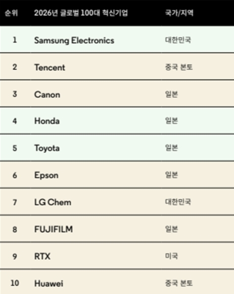 ▲2026년 글로벌 100대 K-혁신기업 [자료: 클래리베이트]