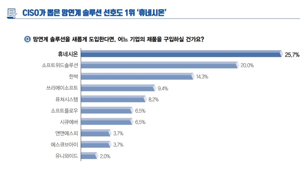 CISO가 선호하는 망연계 상위 3개사, 60% 차지... 휴네시온 1위 차지
