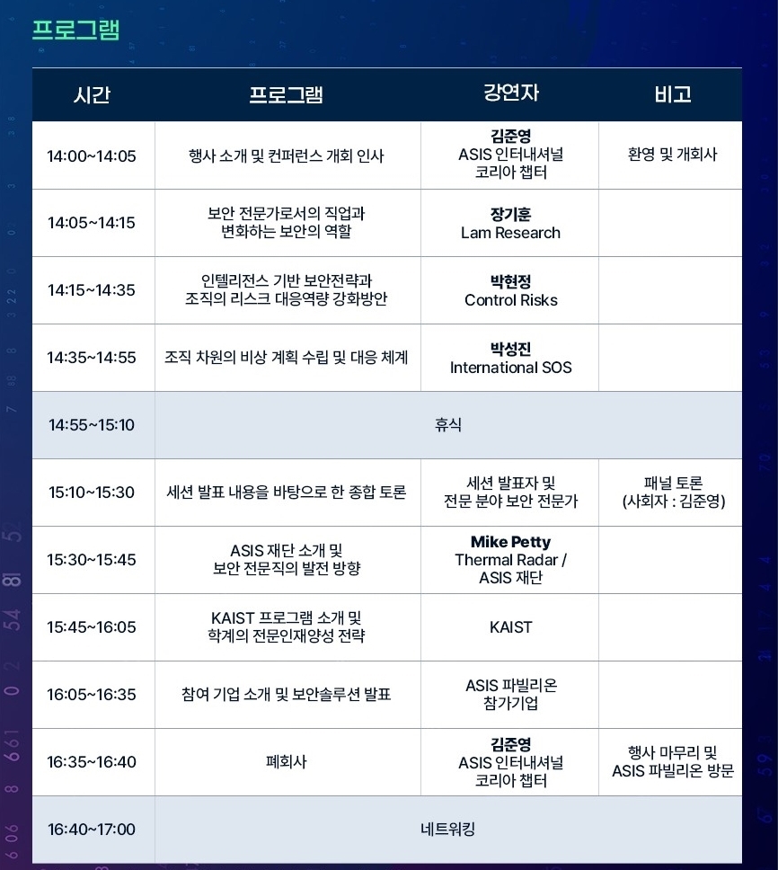 ASIS 코리아 챕터 관계자는 “SECON & eGISEC 2026과 함께 개최하는 이 행사가 보안의 미래에 대한 의미있는 대화를 촉진하고 한국 내 보안 커뮤니티의 협업을 강화하는 계기가 되기를 바란다”고 밝혔다.