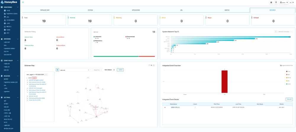 허니비는 독자적 ‘디펜더 맵’(Defender Map) 기능을 통해 서버 내 실시간 프로세스 가시성을 제공한다. 복잡한 정책 설정도 몇 번의 클릭만으로 완료할 수 있다.