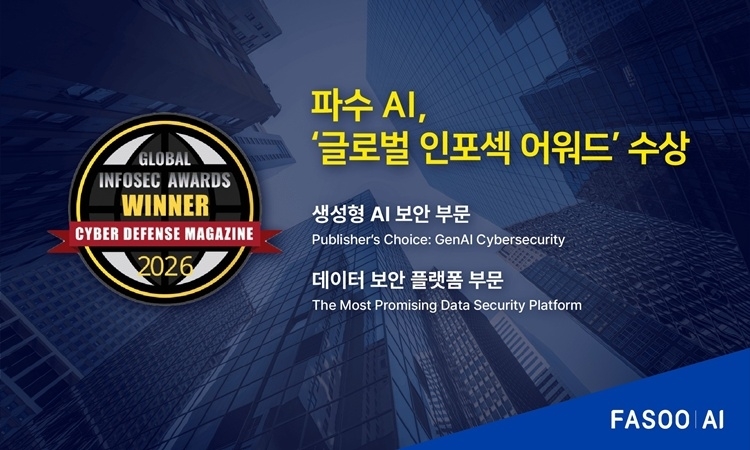 파수 AI는 미국 사이버 디펜스 매거진(CDM)이 주최하는 ‘글로벌 인포섹 어워드 2026’에서 생성형 AI 보안 부문 ‘발행기관 상’(Publisher’s Choice)과 데이터 보안 플랫폼 부문 ‘최고 유망 기업 상’(The Most Promising)을 동시 수상했다고 7일 밝혔다.