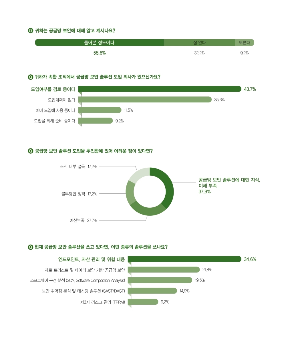응답자의 58.6%는 공급망 보안에 대해 “들어본 정도”라고 답했다. “잘 안다”는 응답은 32.2%, “모른다”는 응답은 9.2%였다.