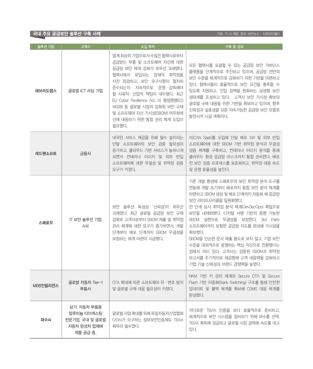 ▲주요 공급망 보안 솔루션 구축 사례 [출처: 보안뉴스·시큐리티월드]