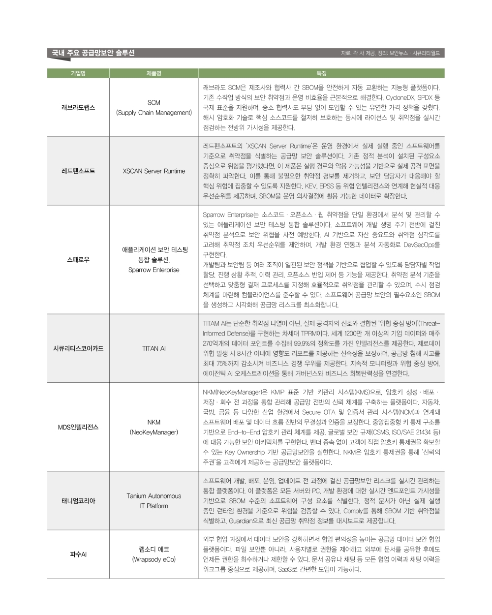 ▲국내외 주요 공급망 보안 솔루션 [자료: 보안뉴스·시큐리티월드]