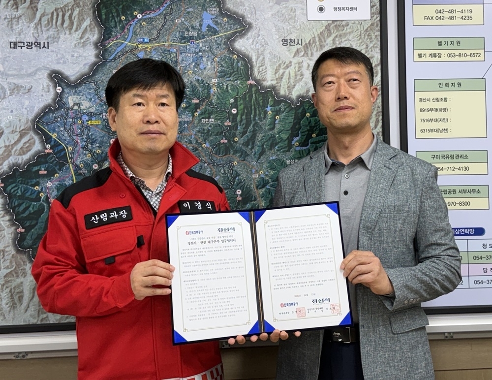 이도형 경산시장 권한대행 부시장은 “이번 협약은 공공기관과 협력해 시민 생명과 재산, 소중한 산림자원을 지키기 위한 의미 있는 출발점”이라며 “첨단 감시체계를 지속적으로 확충해 산불로부터 안전한 경산시를 만드는 데 최선을 다하겠다”고 말했다.