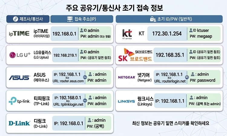 ▲주요 공유기·통신사 초기 접속 정보 [생성형 AI 활용 이미지]